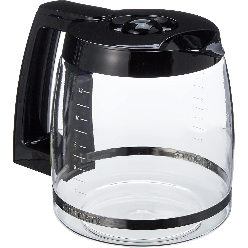 12-cup carafe with ergonomic handle, dripless spout, and knuckle guard. DCC-1200PRC is the black replacement carafe for the 12-cup Cuisinart Brew Central Coffeemaker. Features: Comfort grip handle.Easy for both left and right handers to use.