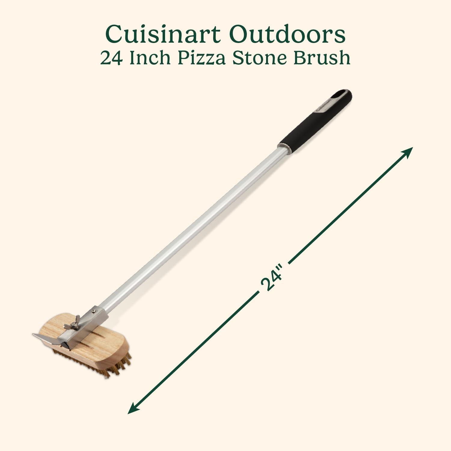 Cuisinart 24” Pizza Stone Cleaning Brush with Rotating Head and Brass Bristles for Easy Cleaning, Lightweight and Durable Long Handle Brush and Scraper for Stubborn Spots, Pizza Oven Accessory