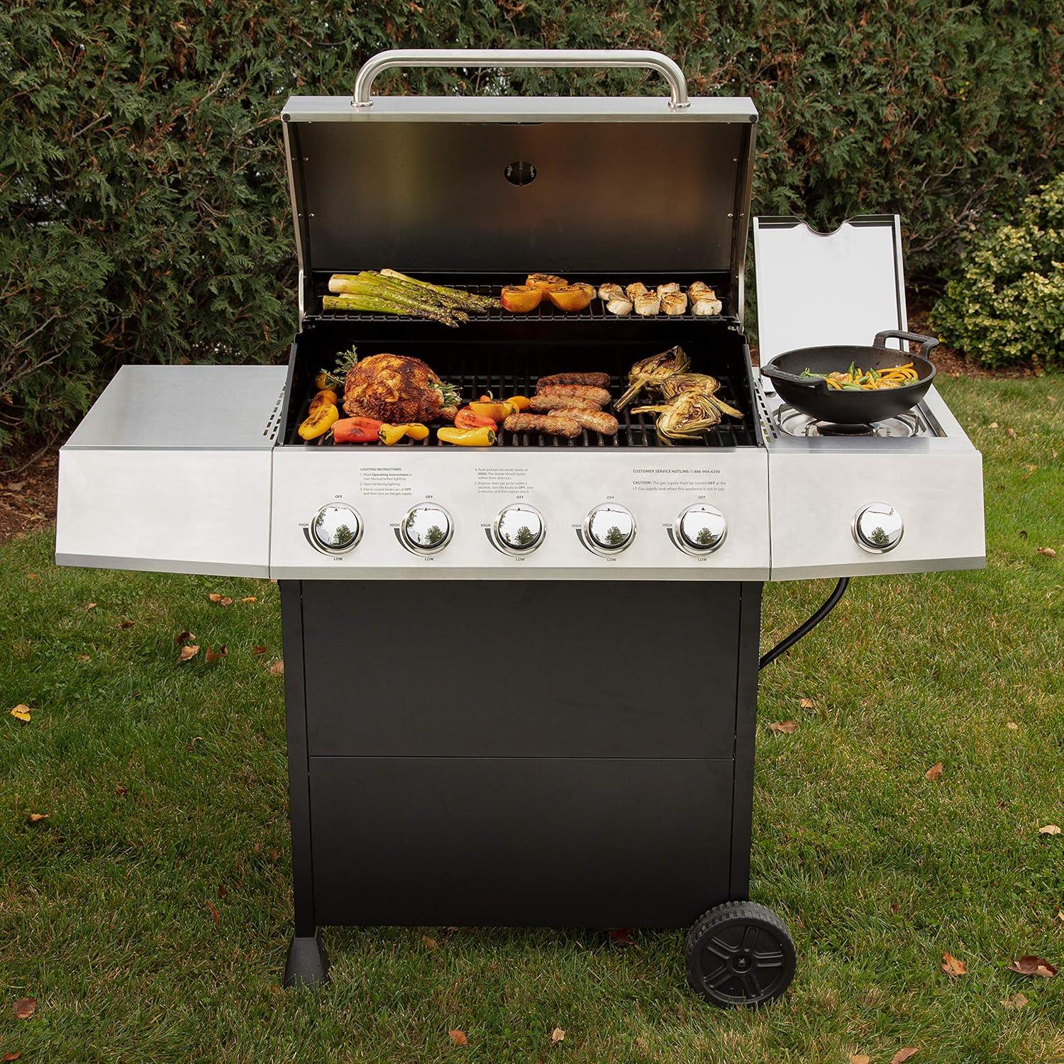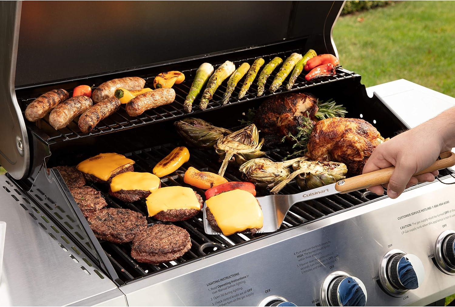 Cuisinart 4-Burner Gas Grill, 44,000 BTU Stainless Steel Full Size Propane Grill with Cast Iron Grates, Outdoor Barbecue with Large Cooking Space and Side Tables for Prep(Five Burner Gas Grill with Side Burner)