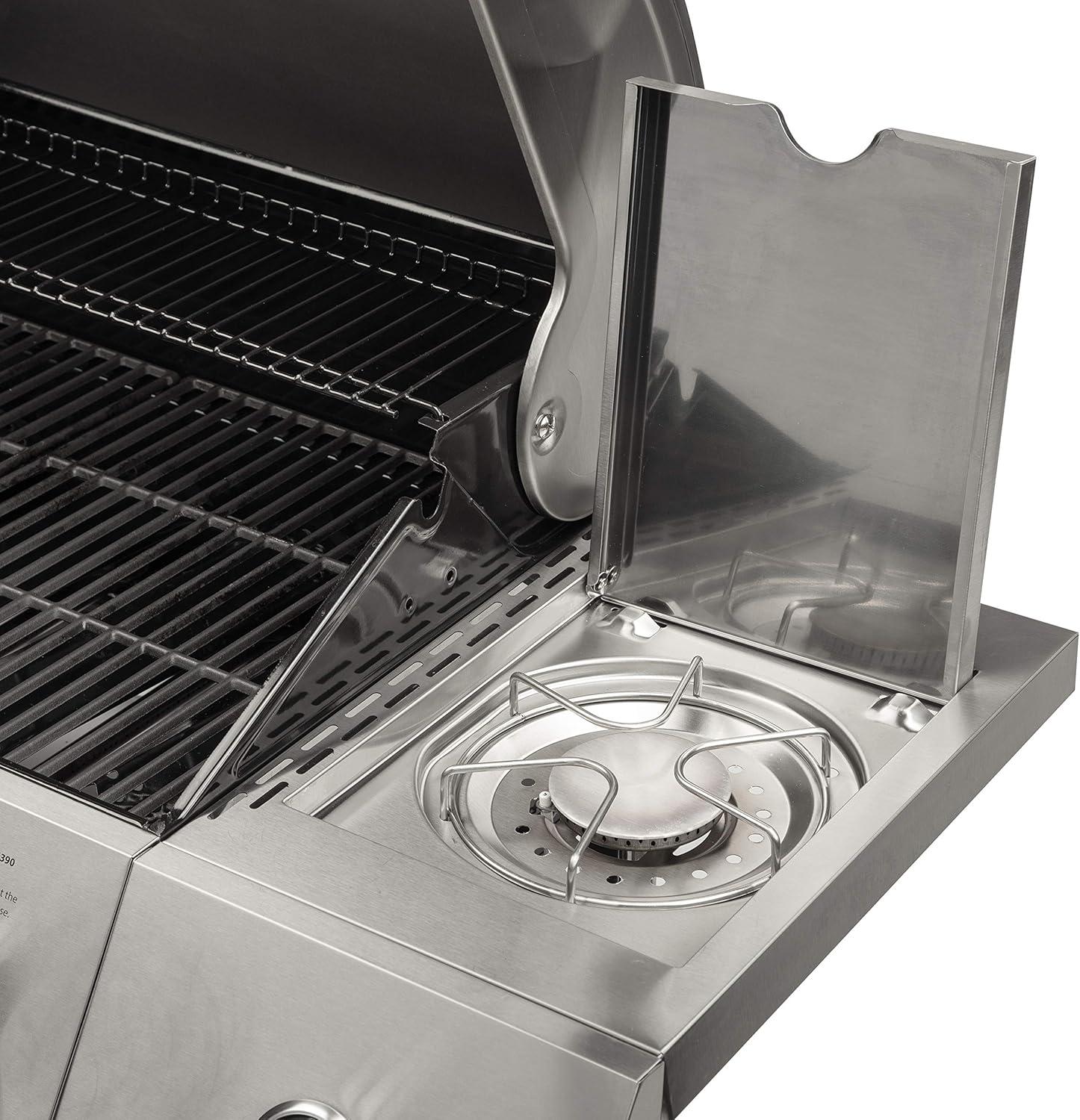CAST IRON GRATES: Retain and distribute heat evenly, creating perfect sear marks and enhanced flavor.