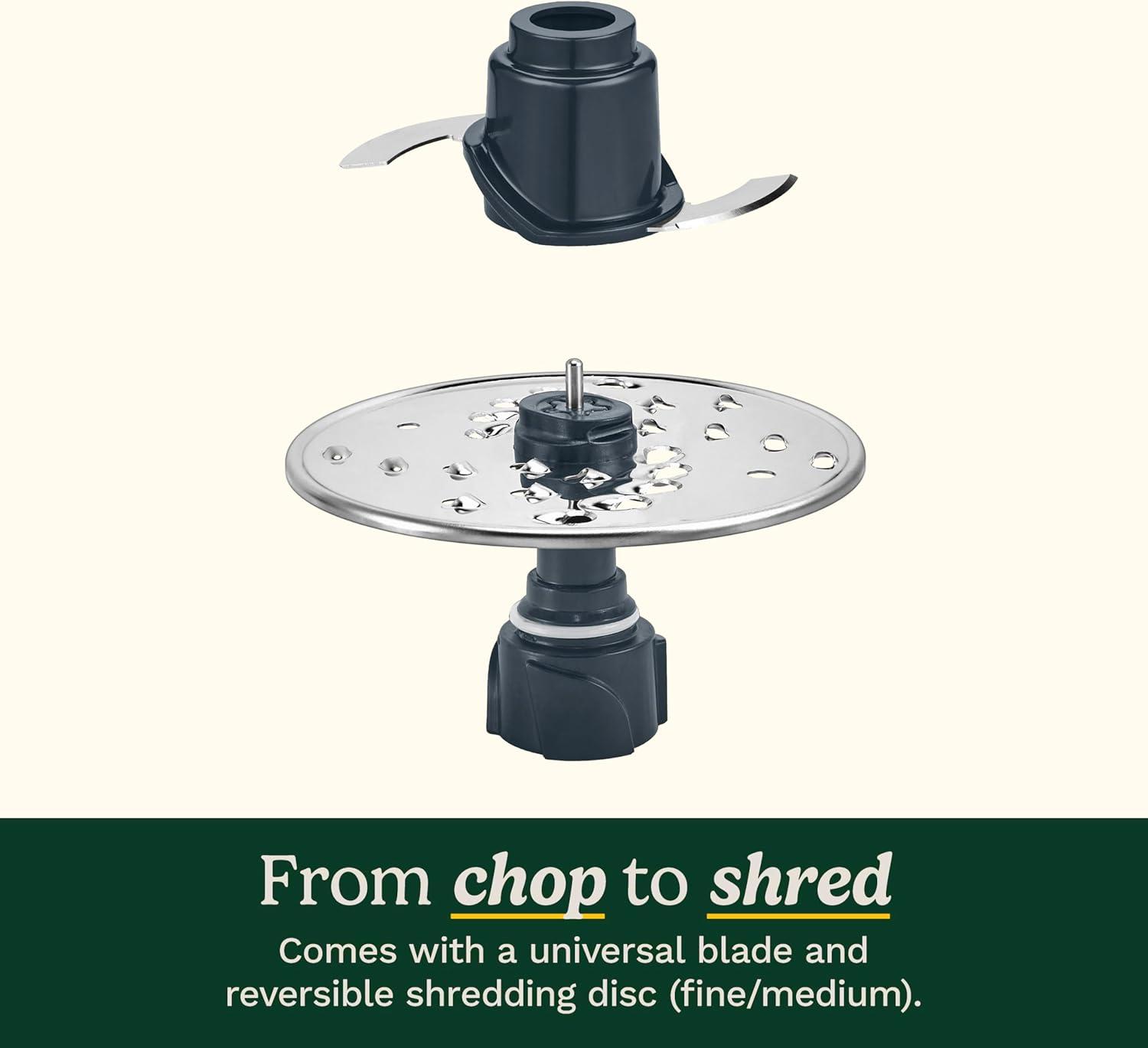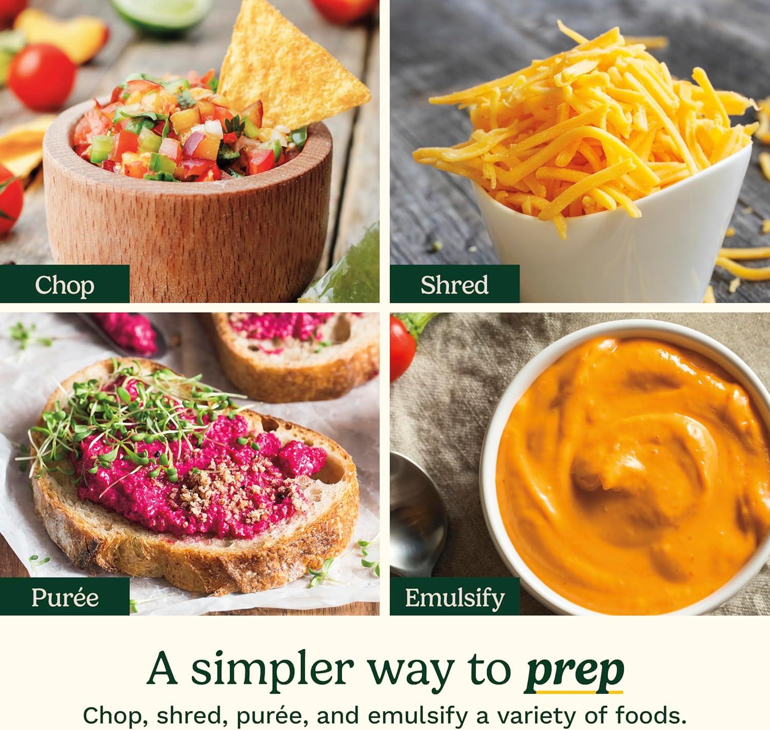 5-cup work bowl with ergonomic handle for quick, easy food prep. Compact base with high-performance motor