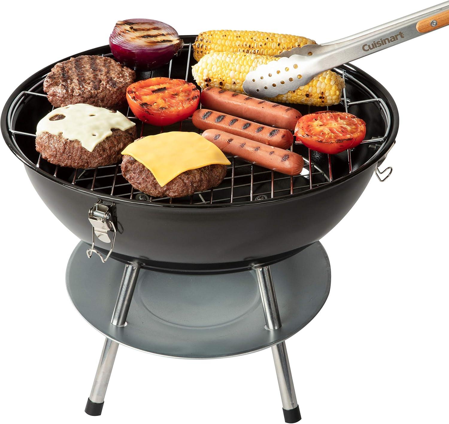 The Cuisinart 16″ Portable Charcoal Grill offers the perfect solution for easy grilling when camping, tailgating, or at home! This compact grill is lightweight and easy to transport, featuring locking latches that keep the lid secured to the body. The 4-legged design is ideal for stability while grilling, ensuring your grill wont rock or tip during use. Controlling temperature is so important when cooking with charcoal, so that is why the Cuisinart 16″ Portable Charcoal Grill features a dual vent system with an air inlet vent on the bottom of the fire bowl and an air exhaust vent on the lid. The ash catcher below the fire bowl protects the surface beneath your grill from any hot bits of charcoal that may fall through while cooking.