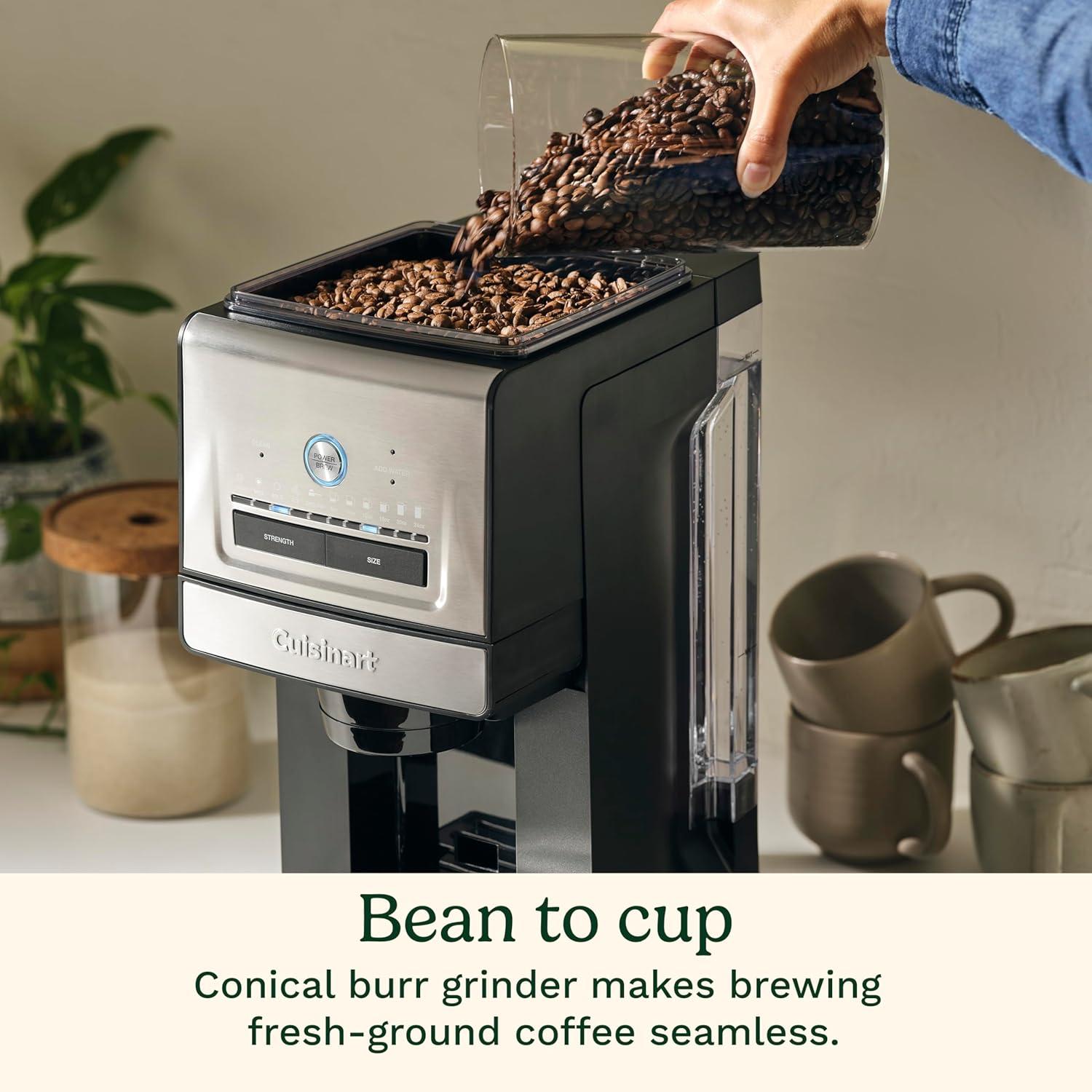 FRESHLY GROUND FLAVOR: Cuisinart Grind and Brew Coffee Maker features a built-in stainless steel conical burr mill that grinds whole beans before brewing for rich, fresh flavor in every cup.