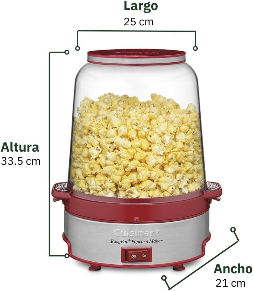 The Cuisinart EasyPop Popcorn Maker makes it easier than ever to pop crunchy homemade popcorn. The Cuisinart Easy Pop Popcorn Maker pops up to 16 cups and has special vents in the popping bowl to let moisture escape. Popcorn lovers can select the desired amount of oil and salt to make popcorn just the way they like it. When popping is complete, they can serve right from the popping bowl. The Cuisinart EasyPop Popcorn Maker operates with the simple flip of a switch. Cleanup is easy too: all removable are parts are dishwasher safe. Limited 3-year warranty.