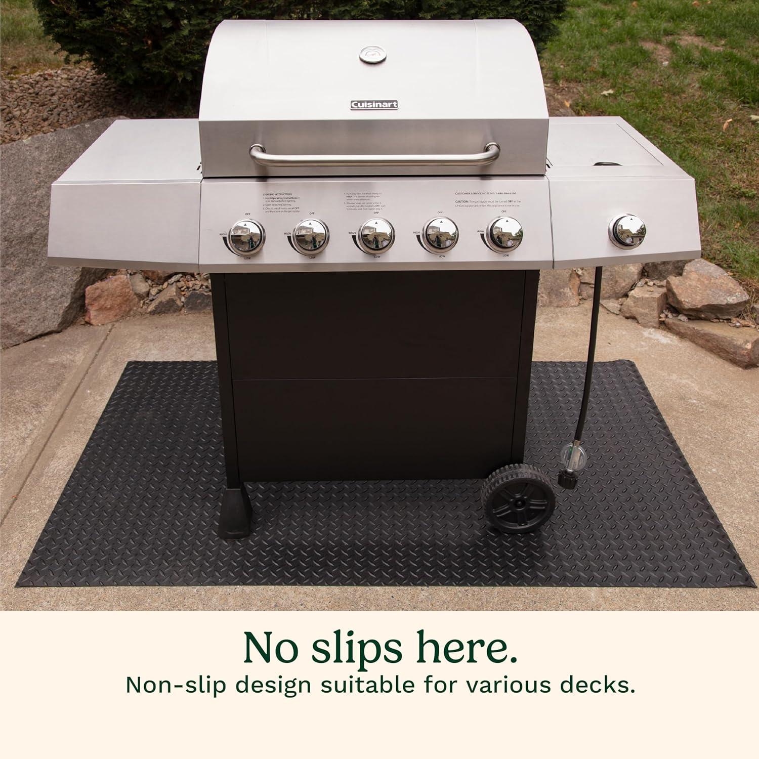 Protect your outdoor space with the Cuisinart 65” x 36” Premium Deck and Patio Grill Mat, the ideal solution for keeping your deck or patio free from grease, stains, and spills during barbecue season. This durable, non-slip outdoor mat is perfectly sized to fit most grills, smokers, and griddles, providing full coverage beneath your BBQ setup. Constructed from 100% weather-resistant PVC, this mat is designed to withstand the elements all season long, making it an essential for any outdoor patio or porch setup. When spills happen, simply rinse off with water, and it's ready to use again. Suitable for wood, composite, and concrete surfaces, this outdoor rug ensures your grilling area stays spotless while enhancing the look of your patio space.